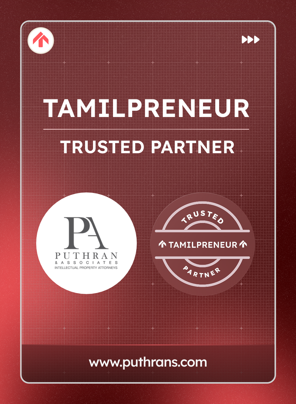 Listing on the Tamilpreneur website as a trusted partner.